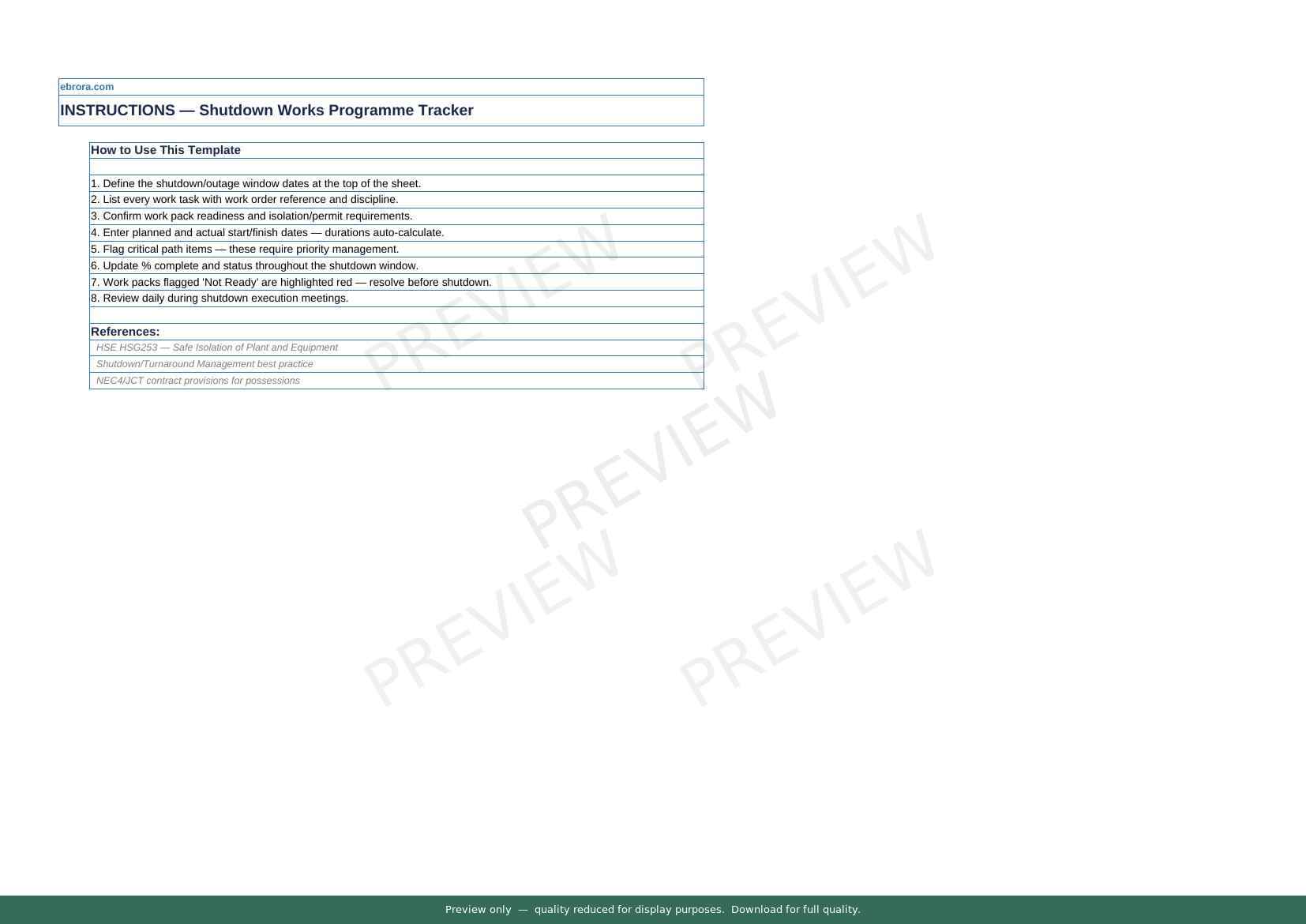 Free Excel template: Shutdown Works Programme Tracker. Download for UK construction sites.