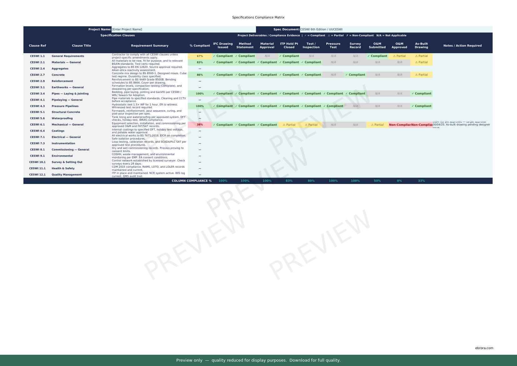 Free Excel template: Specifications Compliance Matrix. Download for UK construction sites.