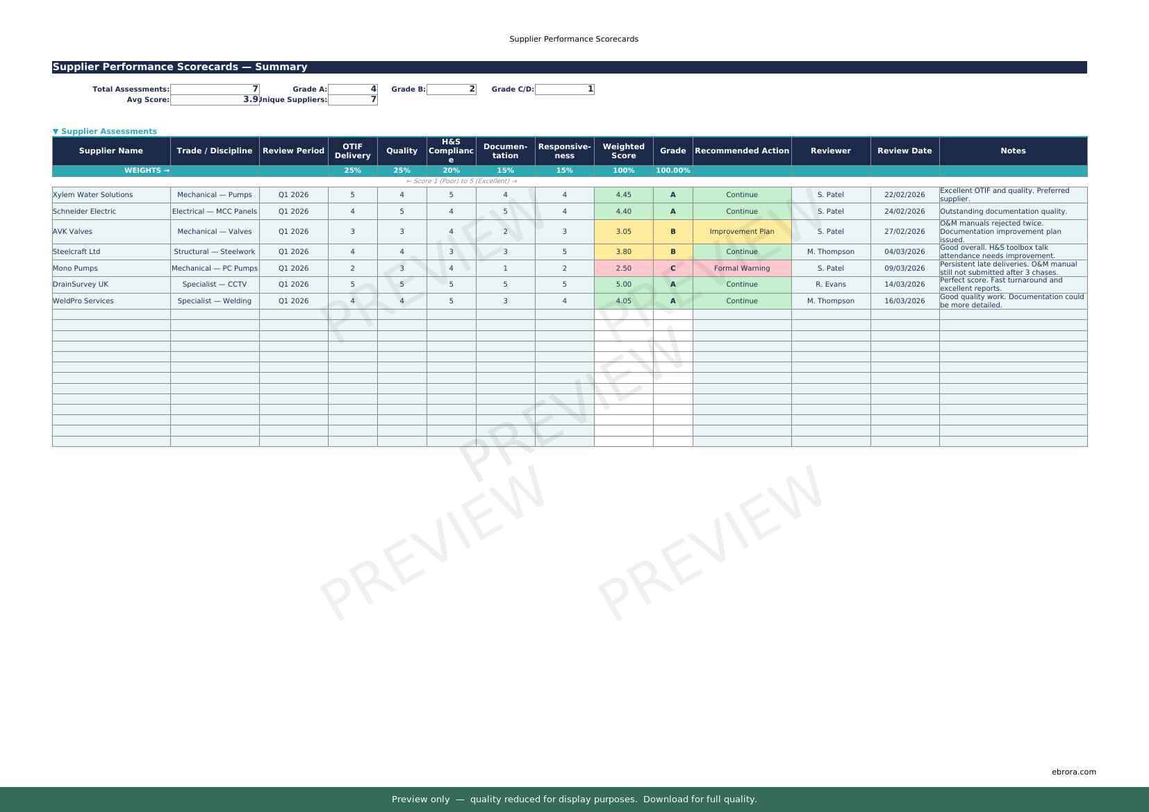 Free Excel template: Supplier Performance Scorecards. Download for UK construction sites.