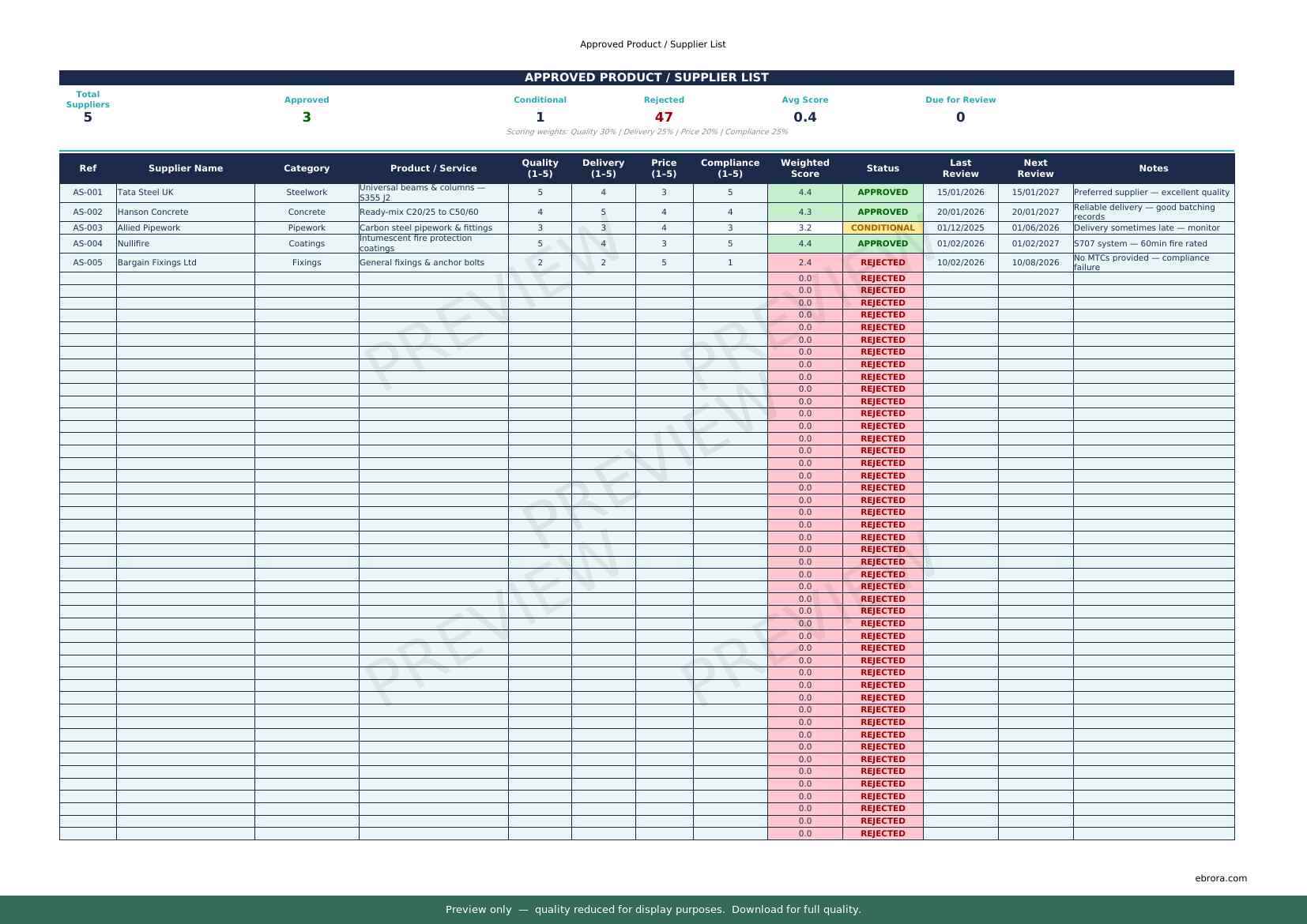 Free Excel template: Approved Product Supplier List. Download for UK construction sites.