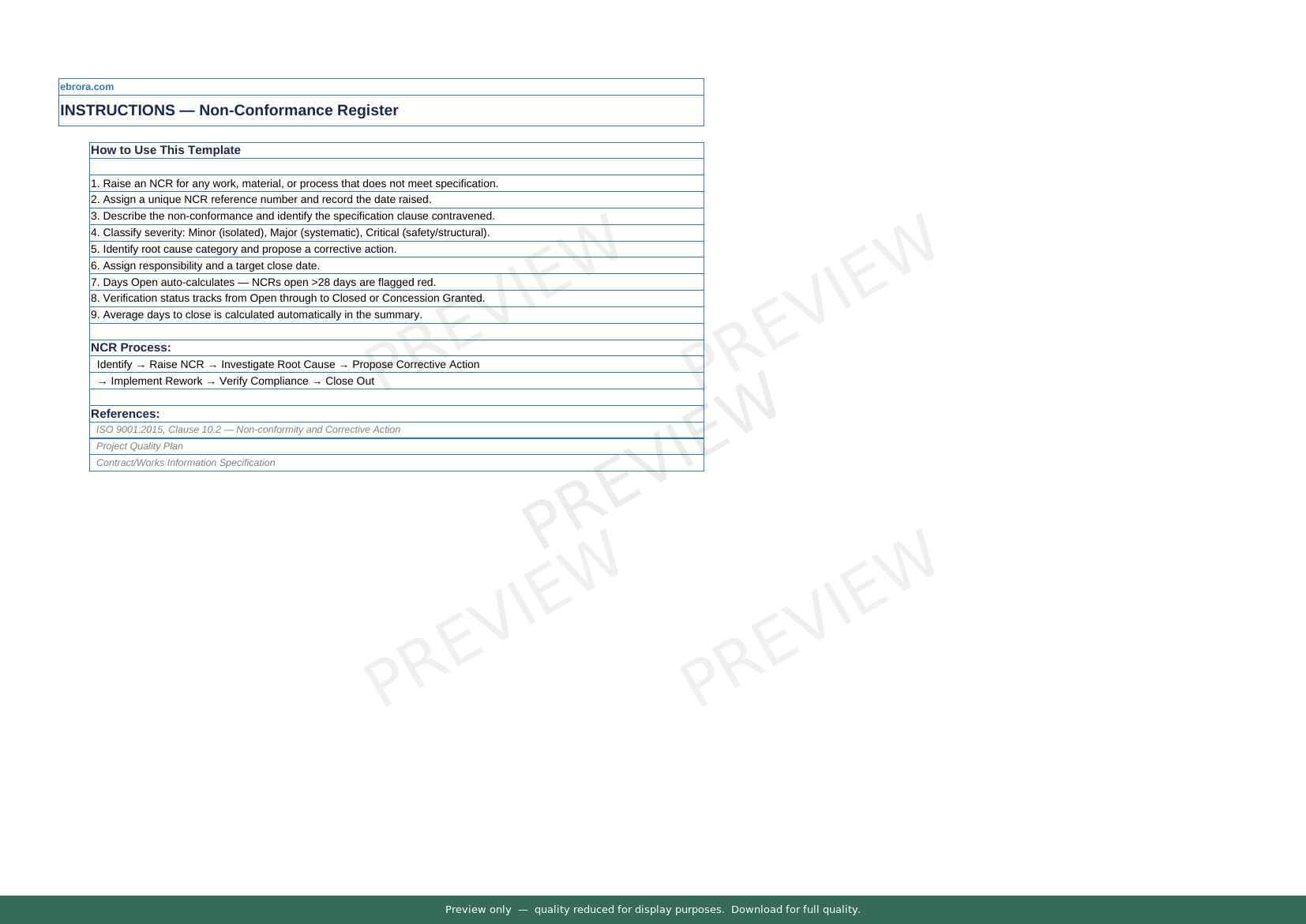 Free Excel template: Non Conformance Register. Download for UK construction sites.