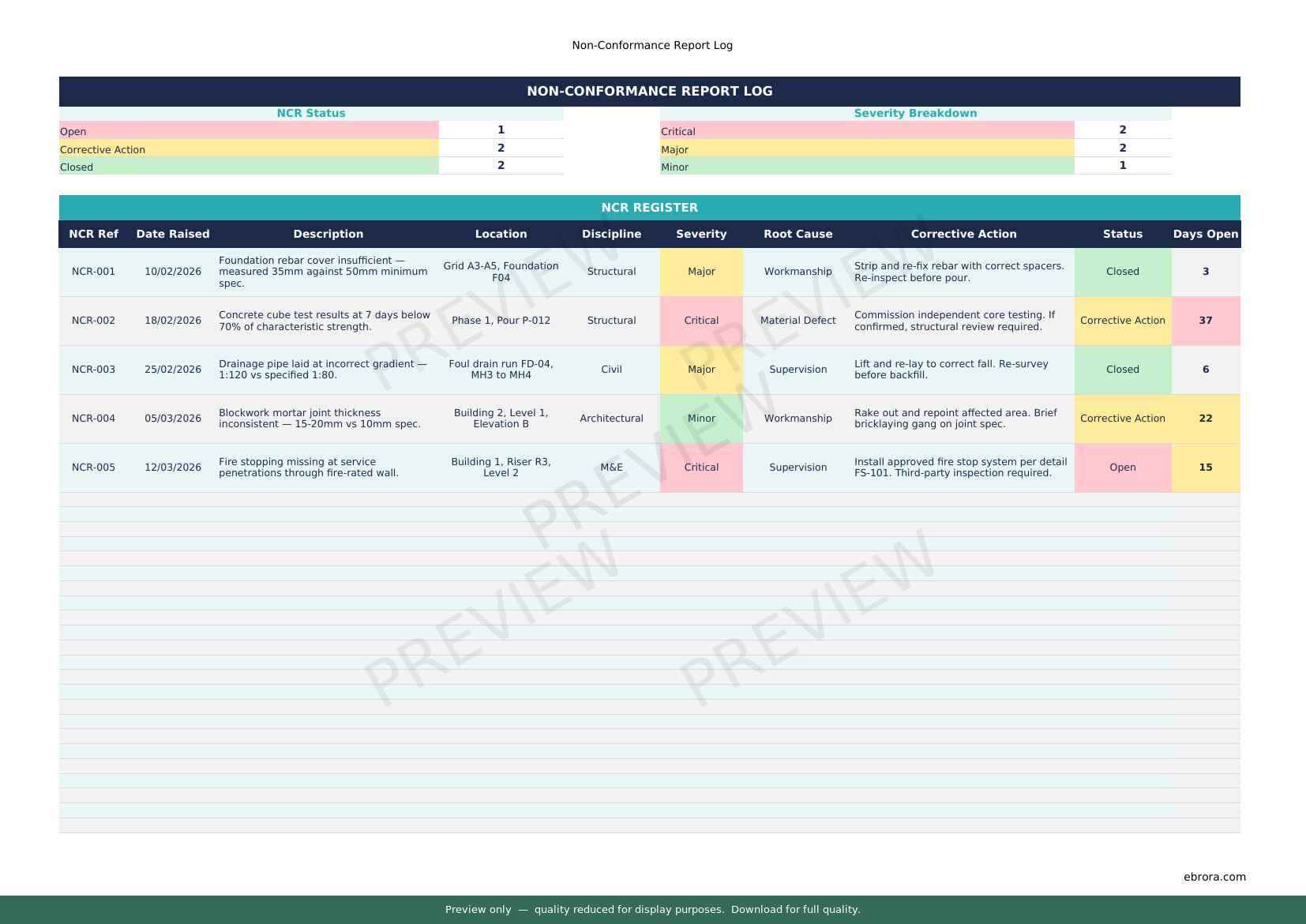 Free Excel template: Non Conformance Report Log. Download for UK construction sites.