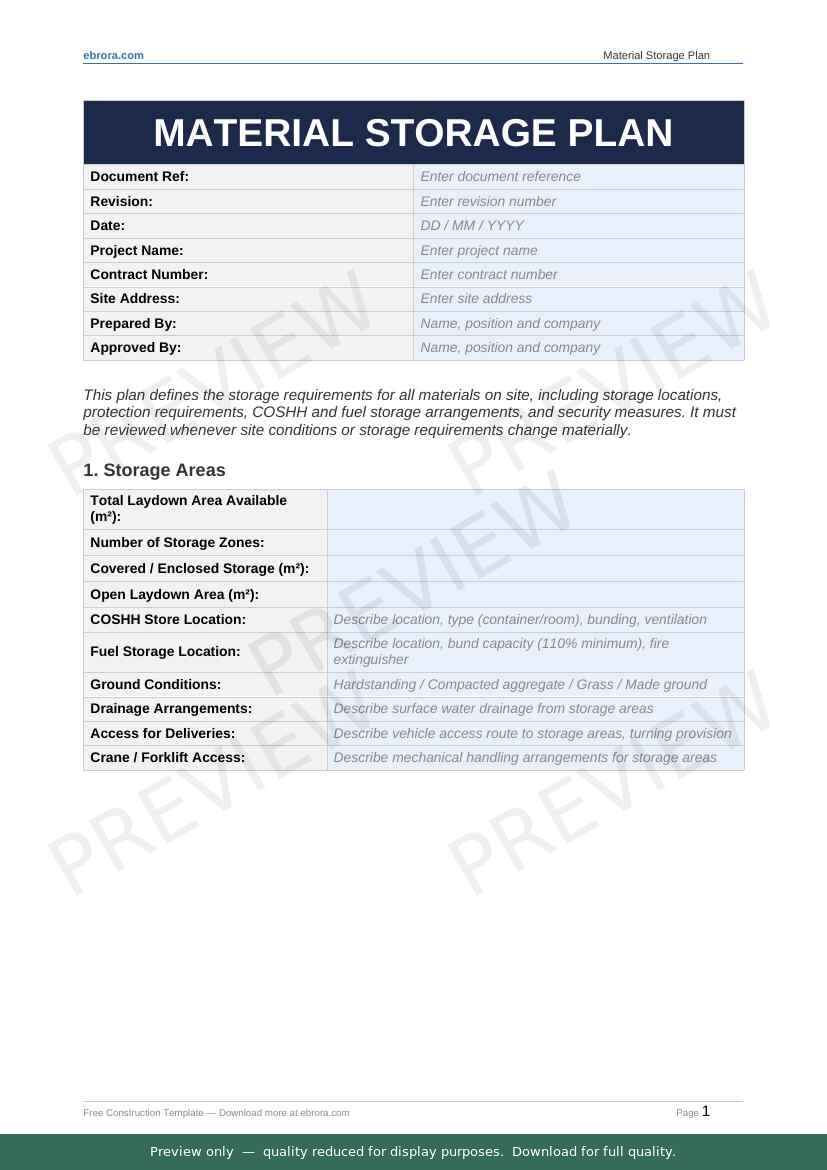 Free Word template: Material Storage Plan. Download for UK construction sites.