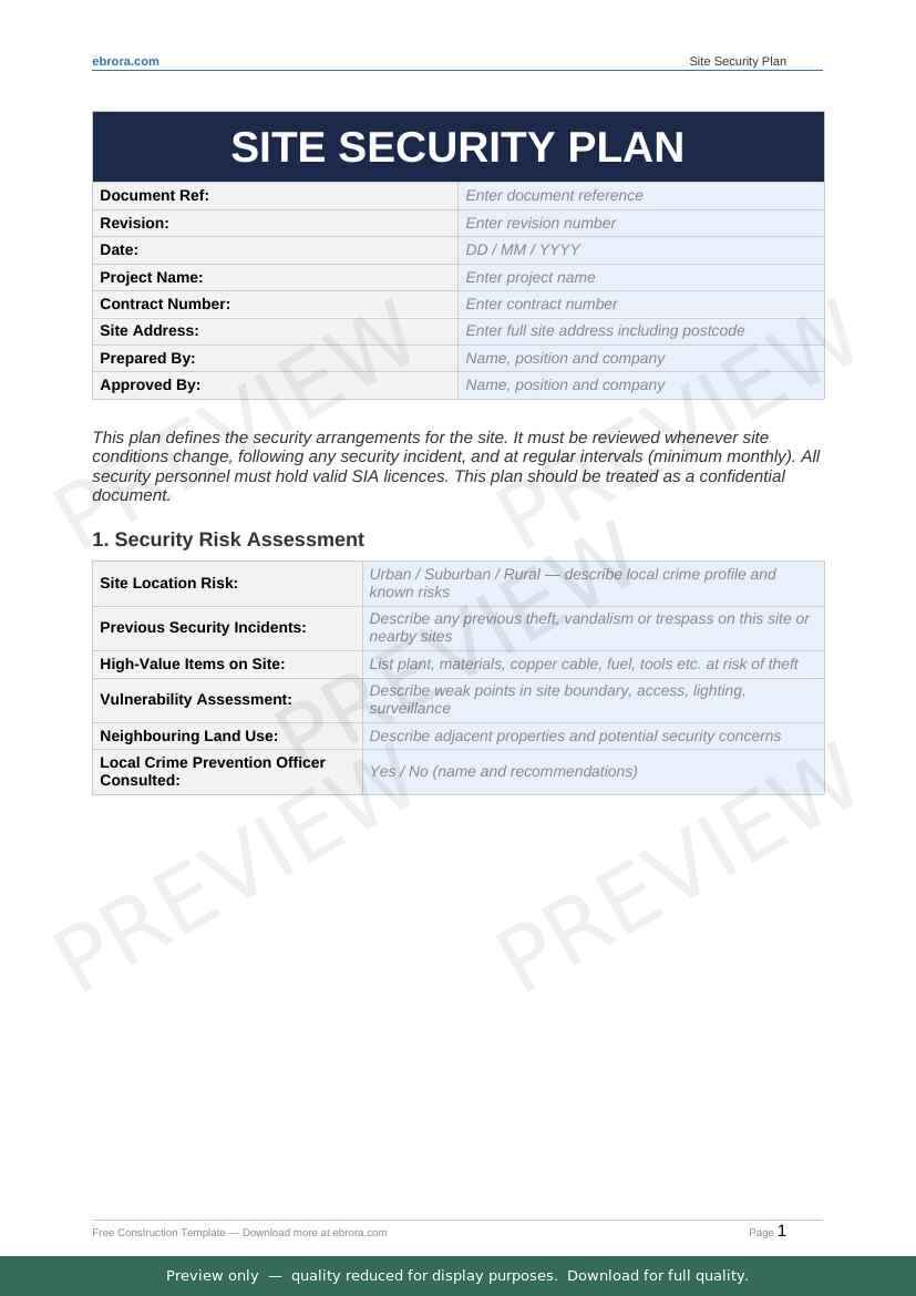 Free Word template: Site Security Plan. Download for UK construction sites.