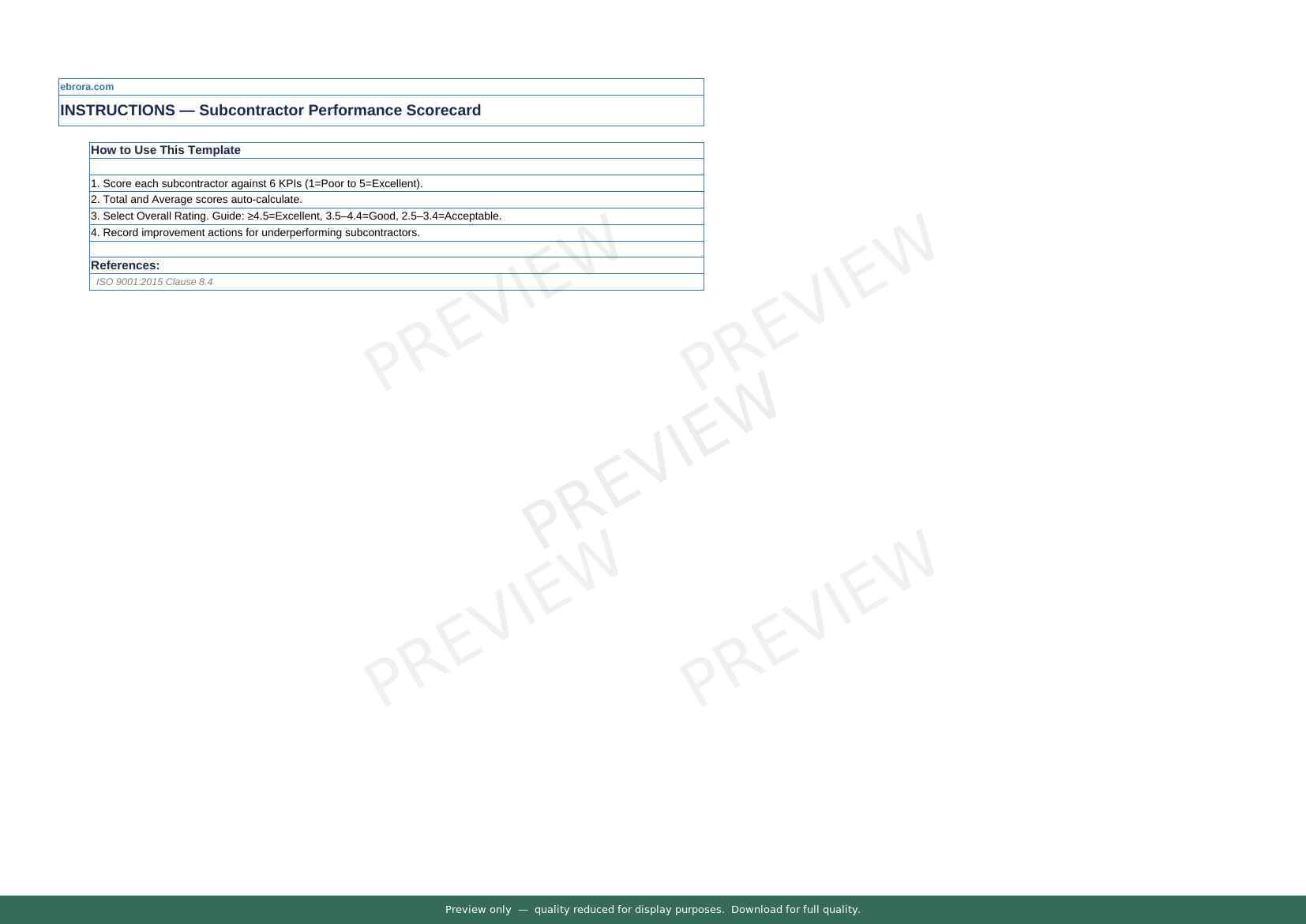 Free Excel template: Subcontractor Performance Scorecard. Download for UK construction sites.