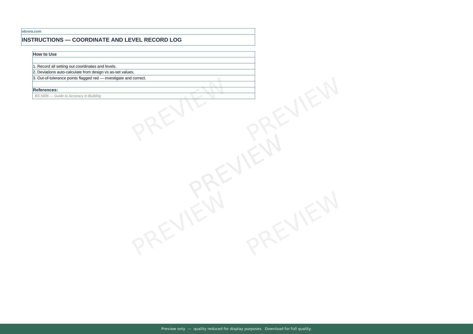 Free Excel template: Coordinate and Level Record Log. Download for UK construction sites.