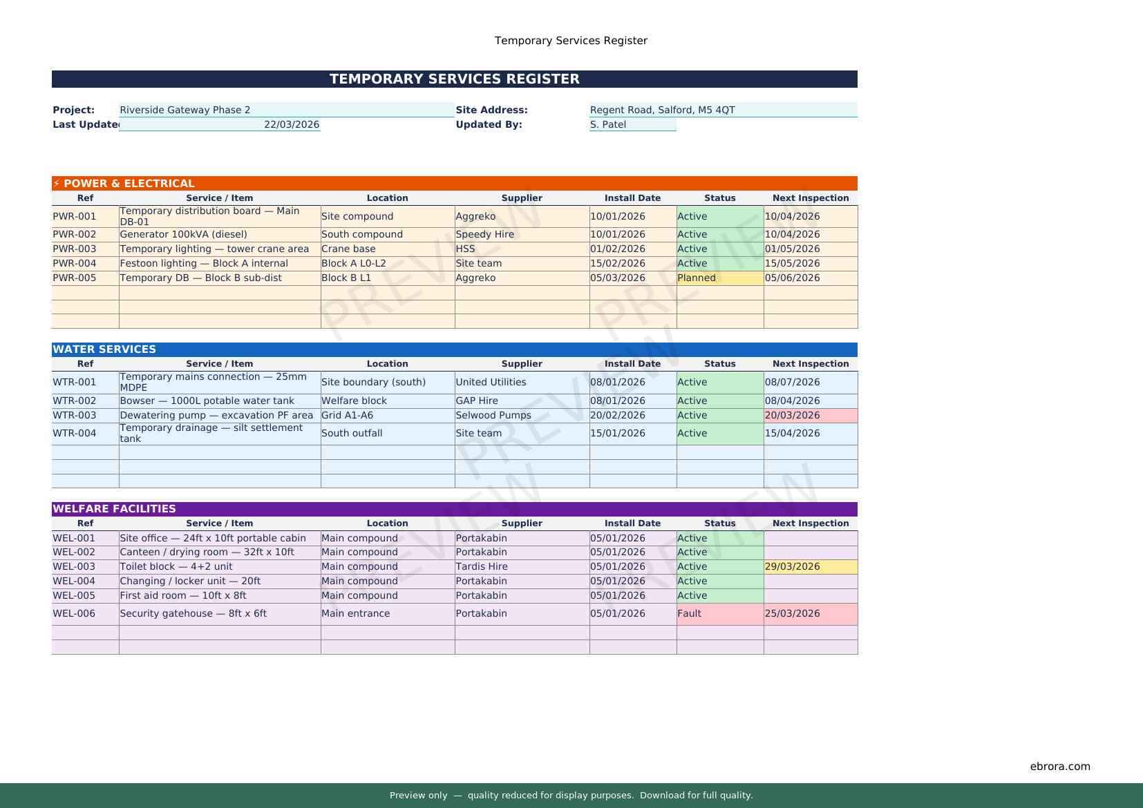 Free Excel template: Temporary Services Register. Download for UK construction sites.