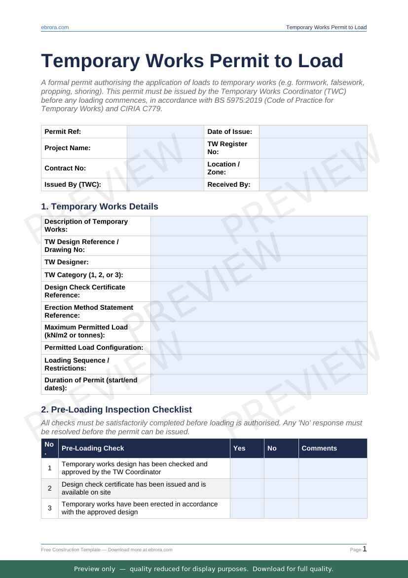 Free Word template: Temporary Works Permit to Load. Download for UK construction sites.