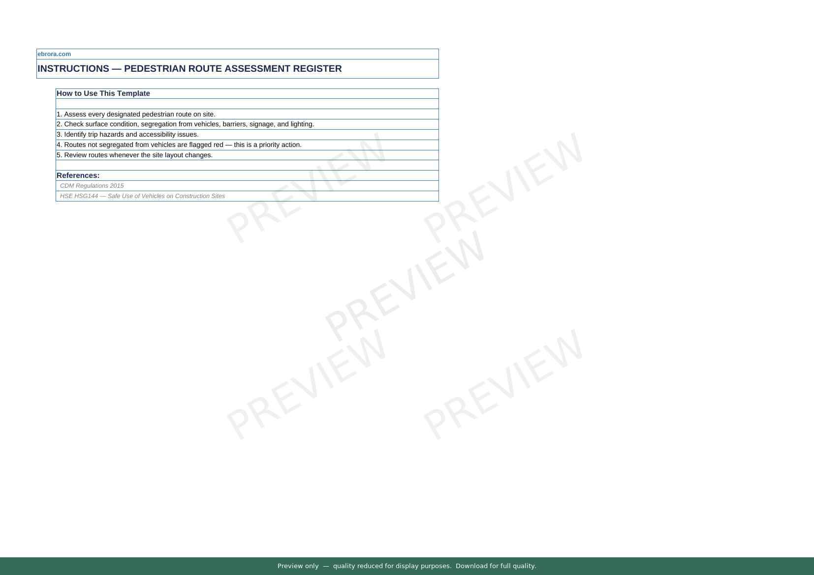 Free Excel template: Pedestrian Route Assessment Register. Download for UK construction sites.