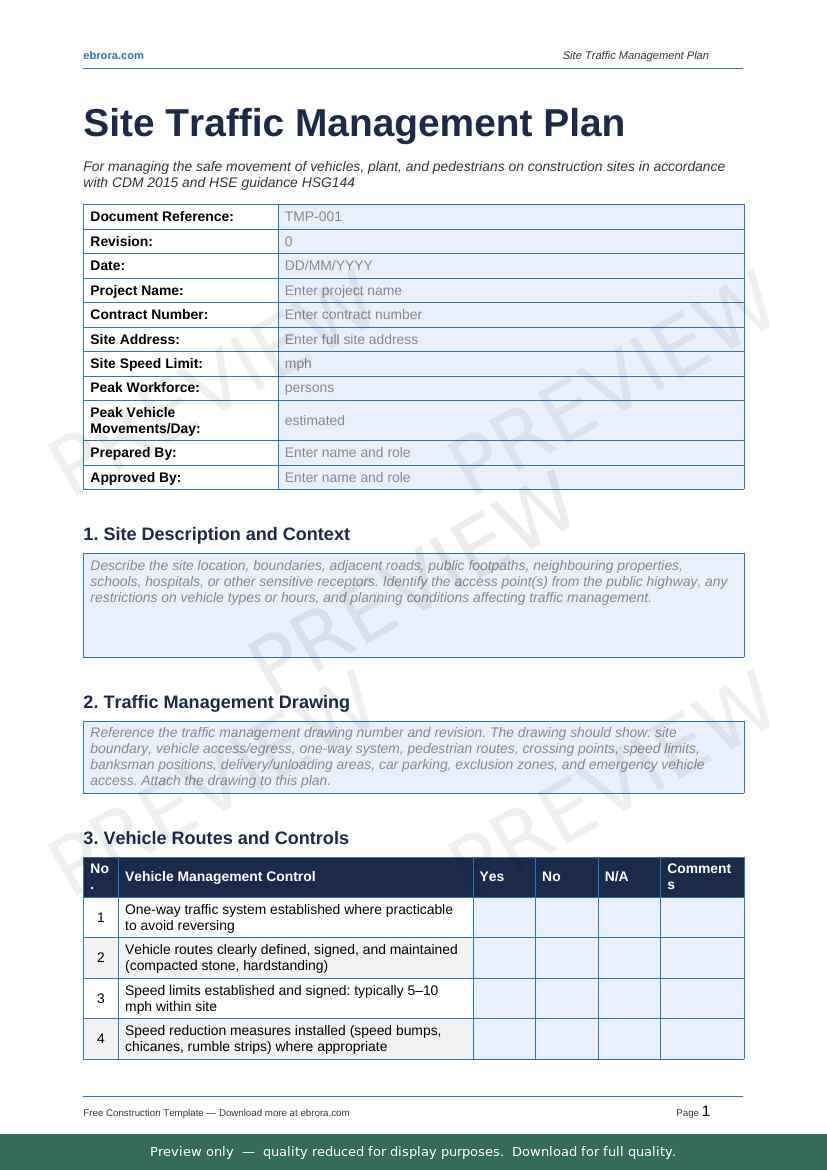 Free Word template: Site Traffic Management Plan. Download for UK construction sites.