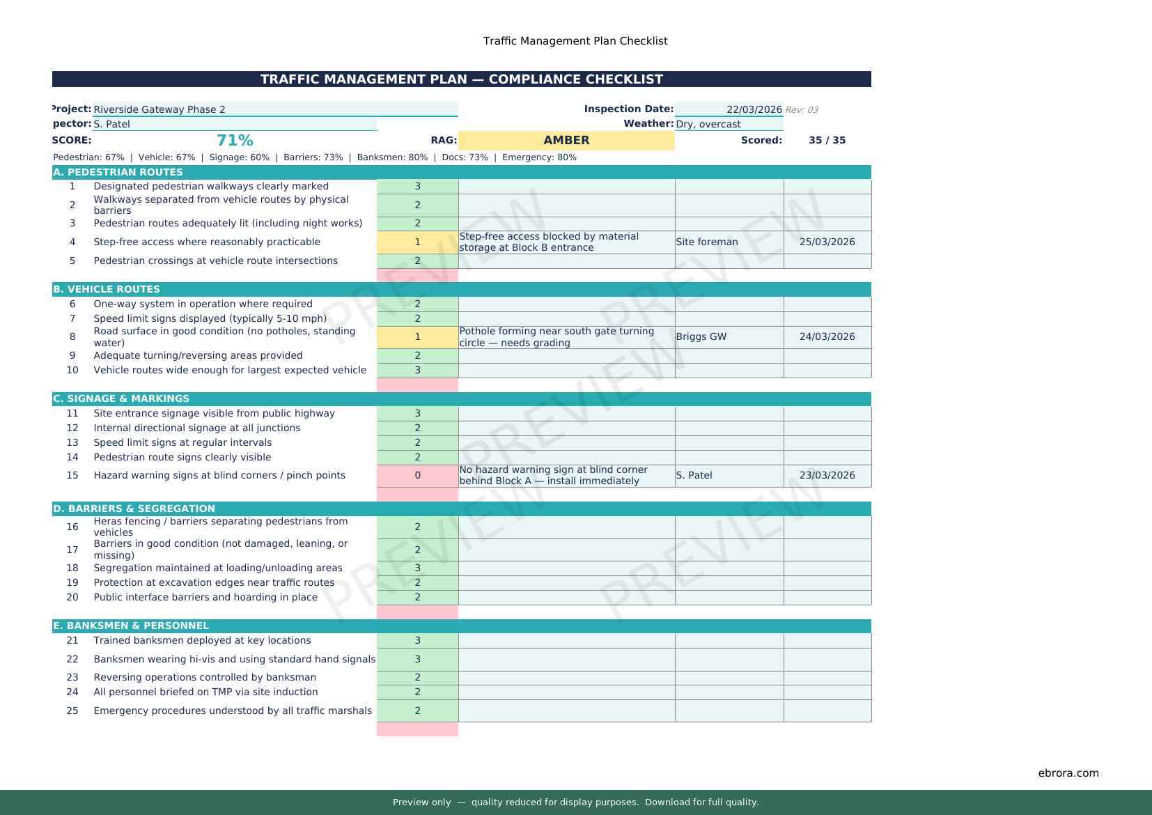 Free Excel template: Traffic Management Plan Checklist. Download for UK construction sites.