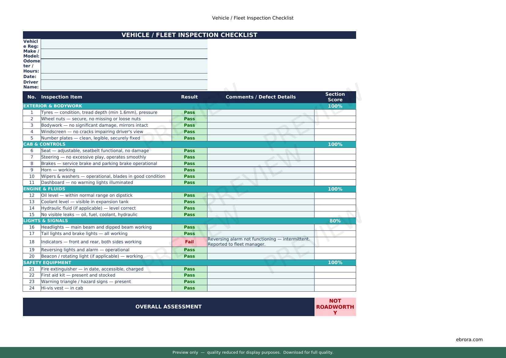 Free Excel template: Vehicle Fleet Inspection Checklist. Download for UK construction sites.
