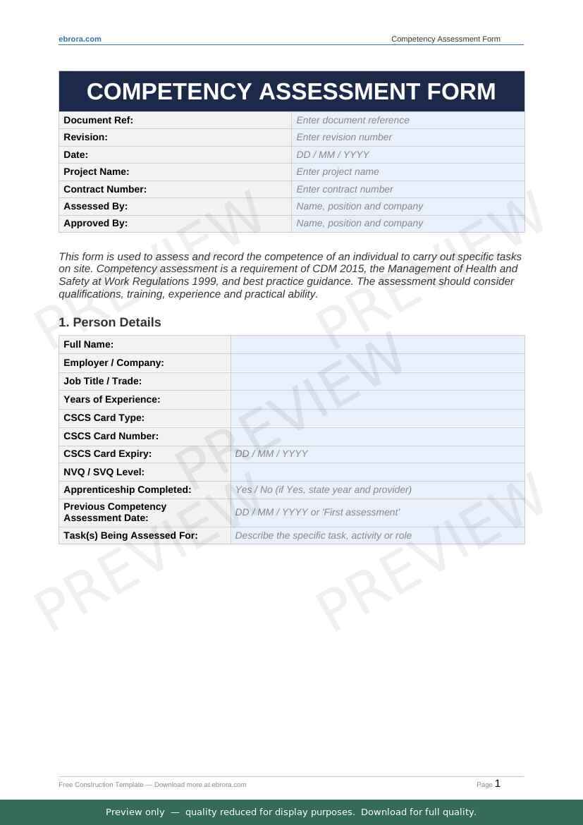 Free Word template: Competency Assessment Form. Download for UK construction sites.