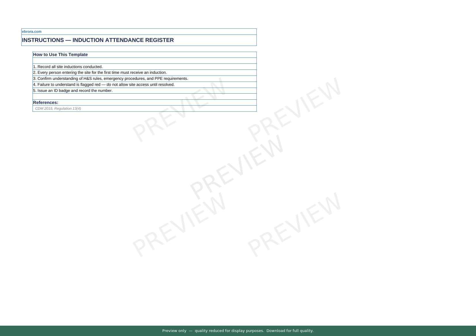 Free Excel template: Induction Attendance Register. Download for UK construction sites.