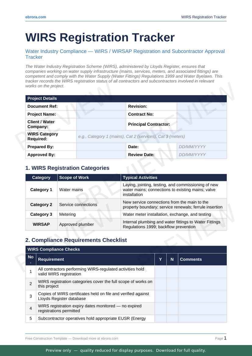 Free Word template: Wirs Registration Tracker. Download for UK construction sites.