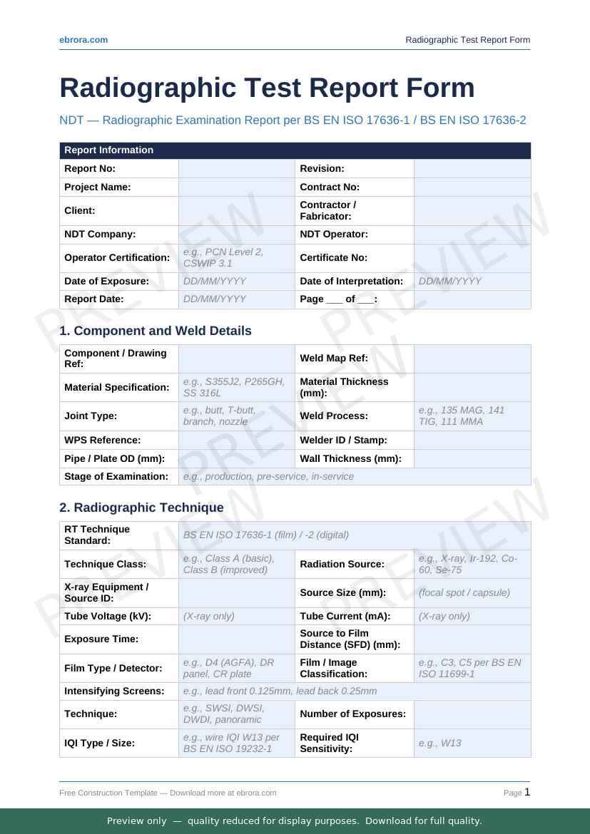 Free Word template: Radiographic Test Report Form. Download for UK construction sites.