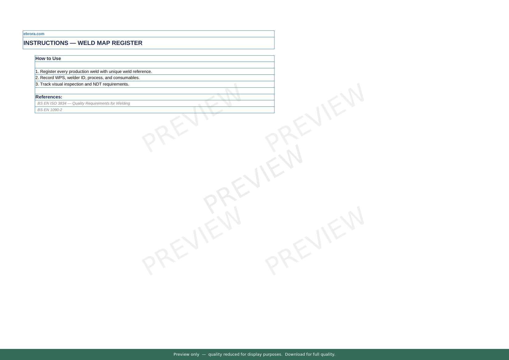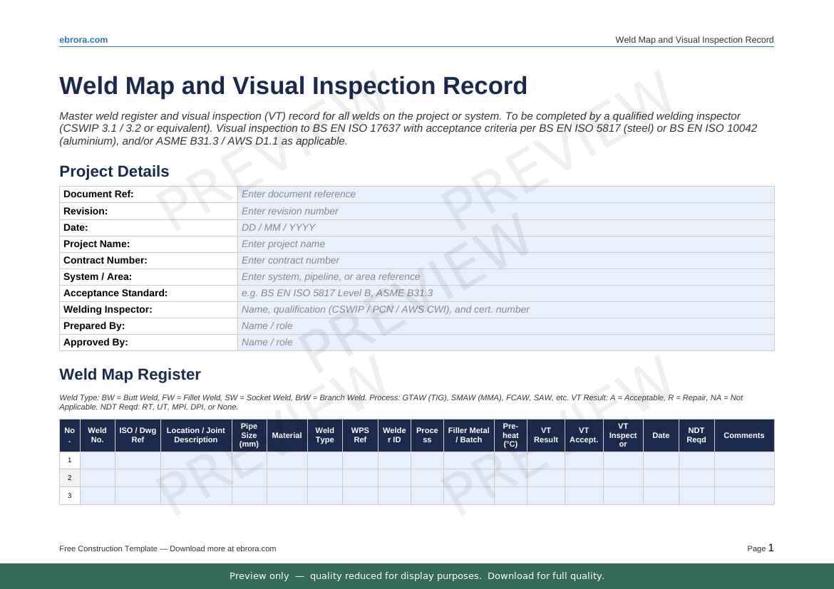 Free Word template: Weld Map and Visual Inspection Record. Download for UK construction sites.
