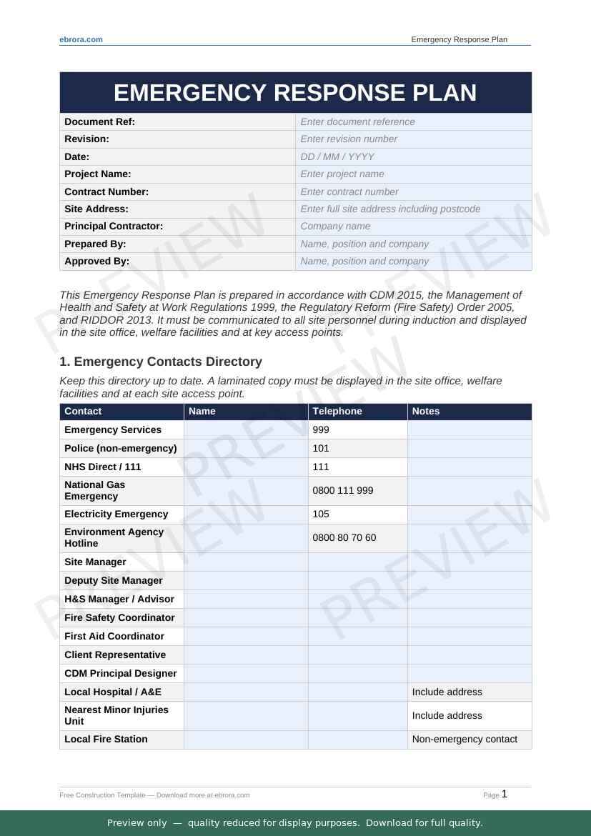 Free Word template: Emergency Response Plan. Download for UK construction sites.